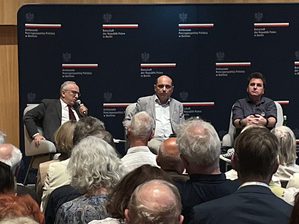 W dyskusji wzięli udział: Jan Tombiński, chargé d’affaires ad interim Rzeczypospolitej Polskiej w Niemczech, Basil Kerski, dyrektor Europejskiego Centrum Solidarności w Gdańsku, a także historyk i publicysta Ilko-Sascha Kowalczuk. Moderację prowadziła Małgorzata Gemen z Niemiecko-Polskiego Towarzystwa w Berlinie.